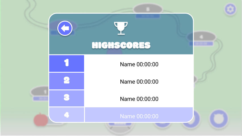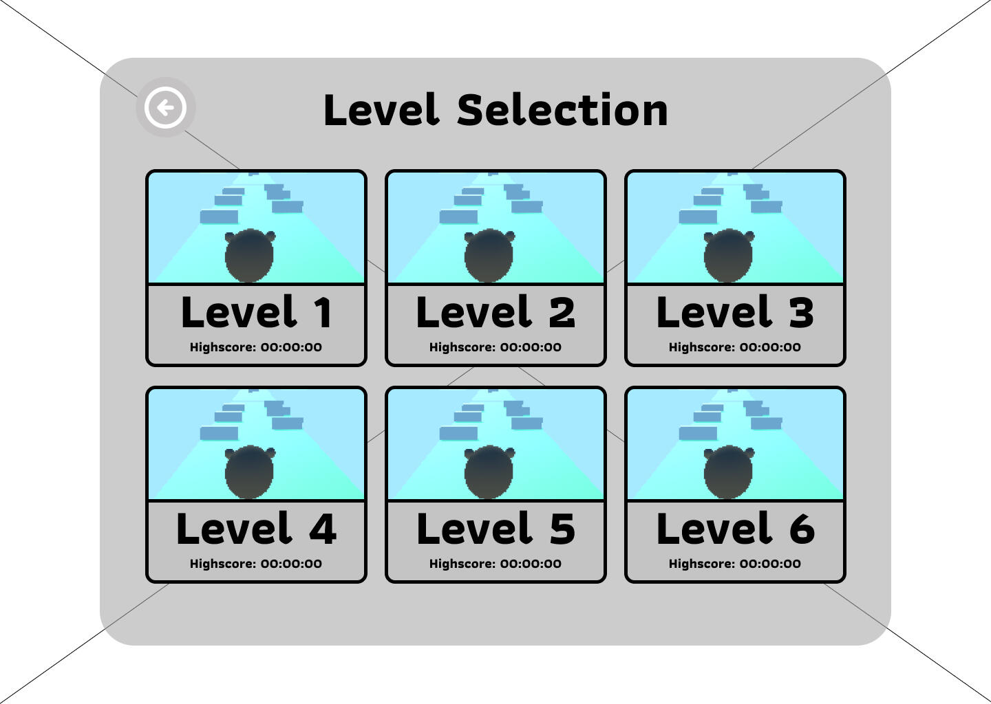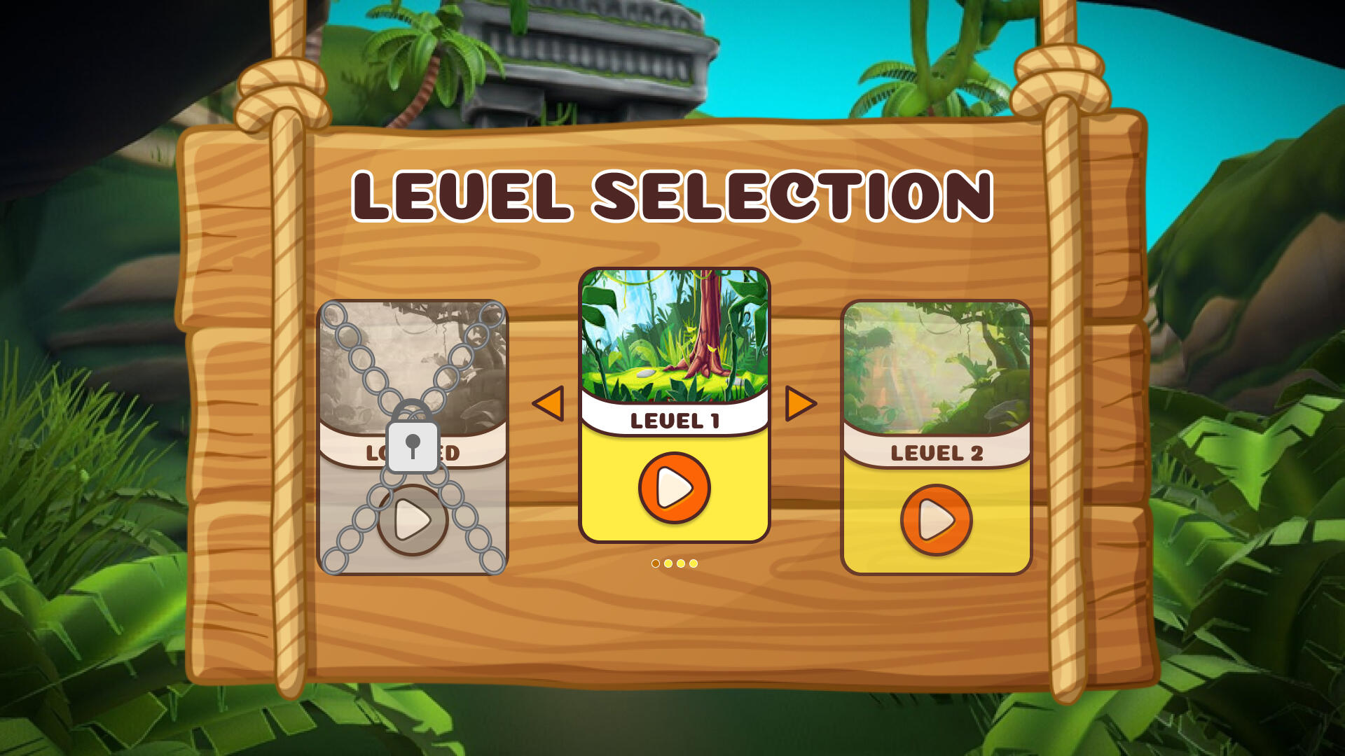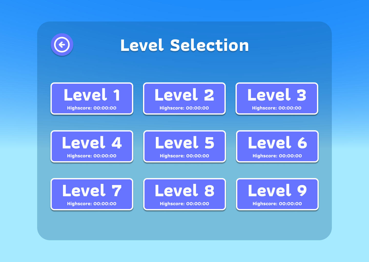 For the level selection, we had two options to choose from. We ended up going for the one closest to the bottom. Why? Since we thought with the pictures above the level it would be too much for the player to look at. We wanted to simplify it and make sure we didn't have to redesign the color scheme if it didn't fit the picture since we were under a short timeframe.