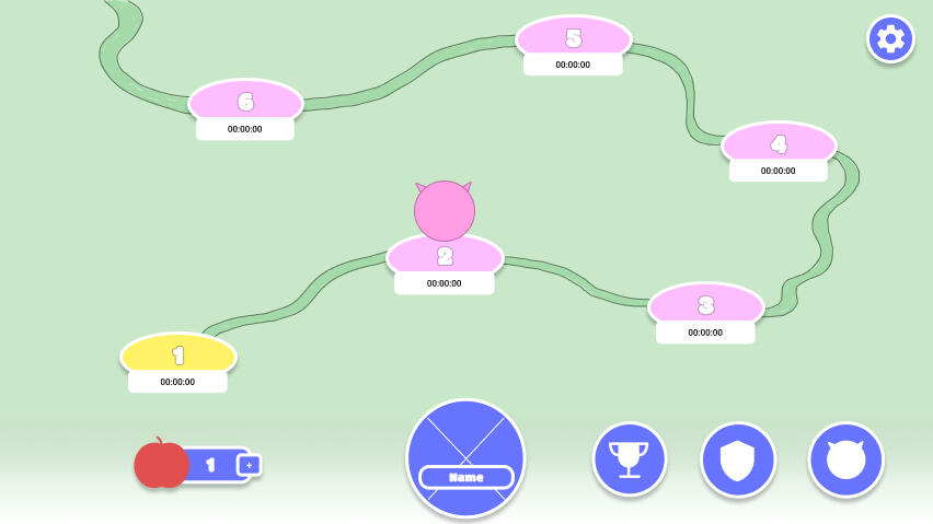 For the level selection, we had two options to choose from. We ended up going for the one closest to the bottom. Why? Since we thought with the pictures above the level it would be too much for the player to look at. We wanted to simplify it and make sure we didn't have to redesign the color scheme if it didn't fit the picture since we were under a short timeframe.